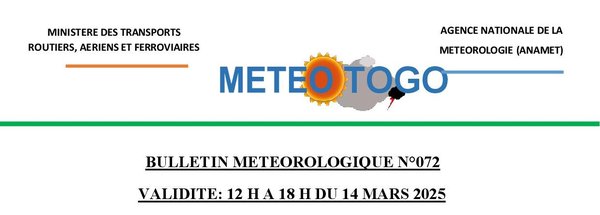 - Dans l’après-midi, quelques orages associés par endroit de pluies faibles sont prévus dans les Plateaux, la Kara et les Savanes. Le temps sera nuageux dans les autres régions.