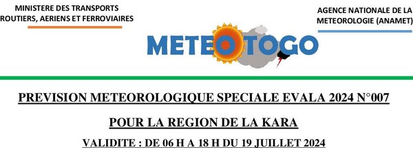 PREVISION METEOROLOGIQUE SPECIALE POUR LA REGION DE LA KARA du 19 JUILLET 2024